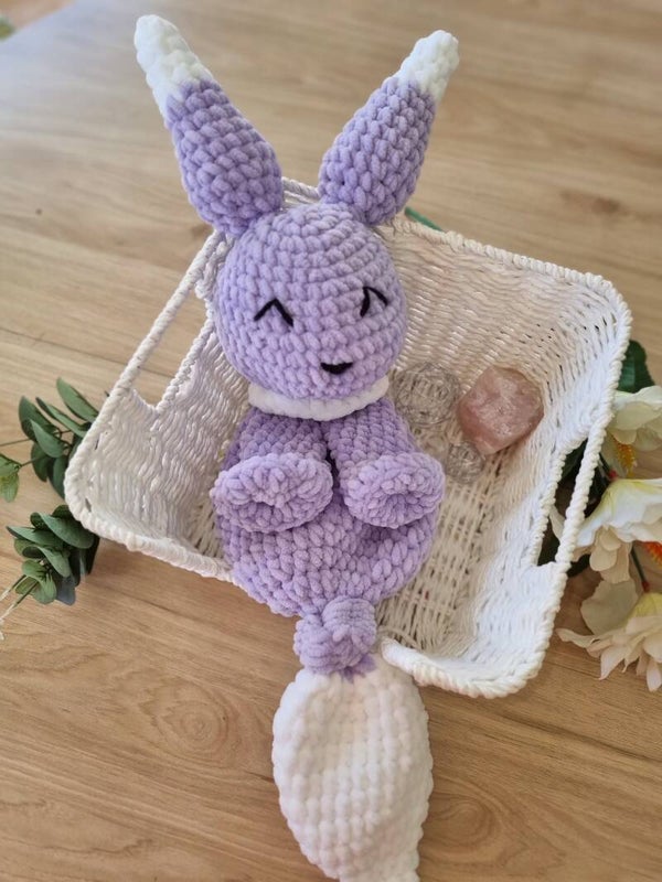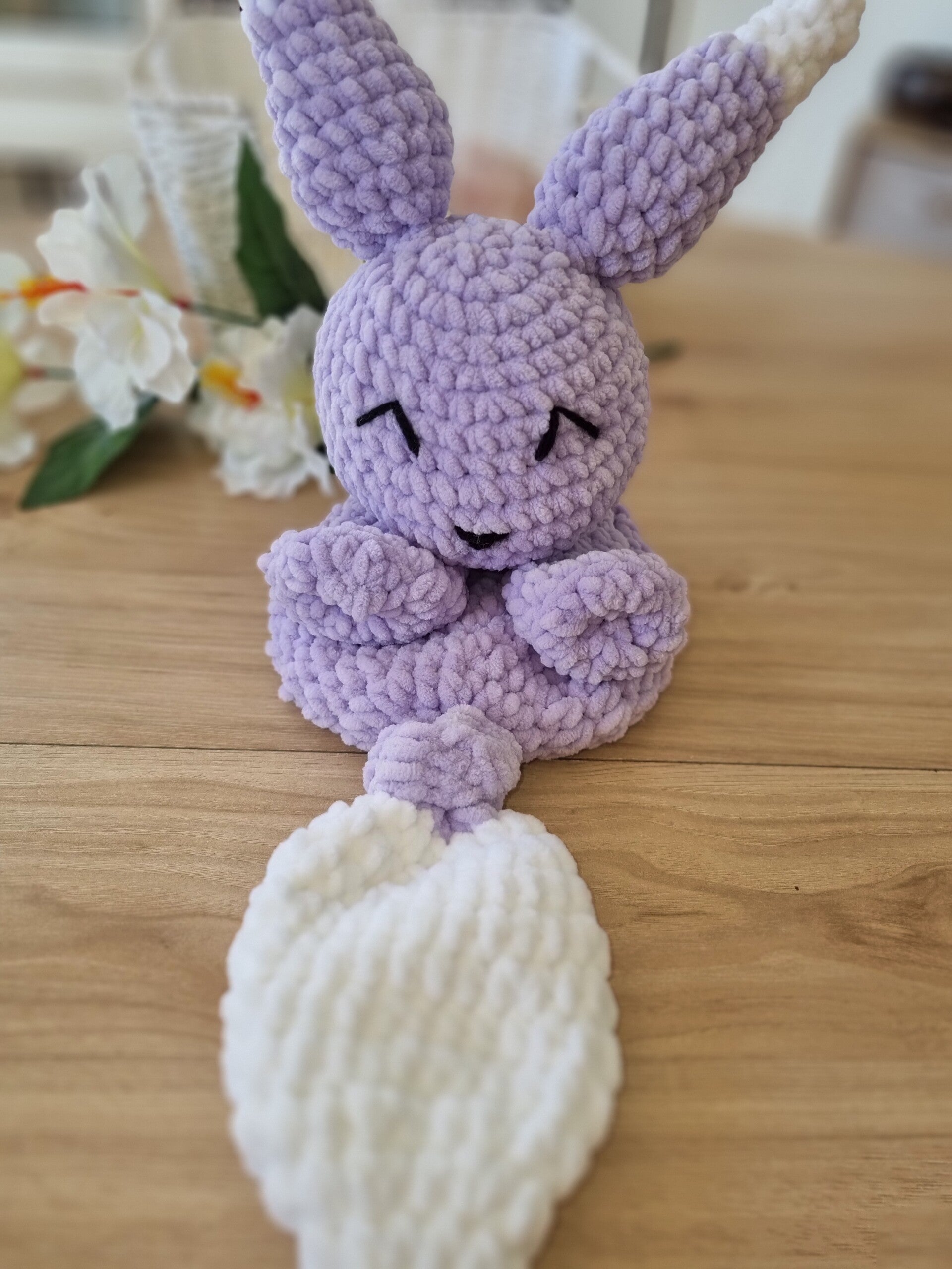 Je vous présente Lilas, le doudou calin et dont la texture velours ravira vos plus petits.